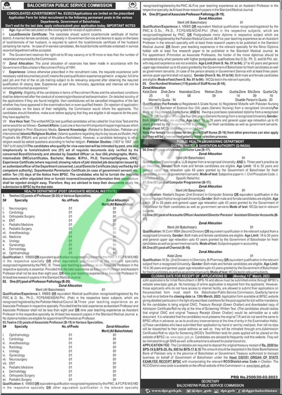 Commission. Applications are being offered by the Balochistan Public Service
