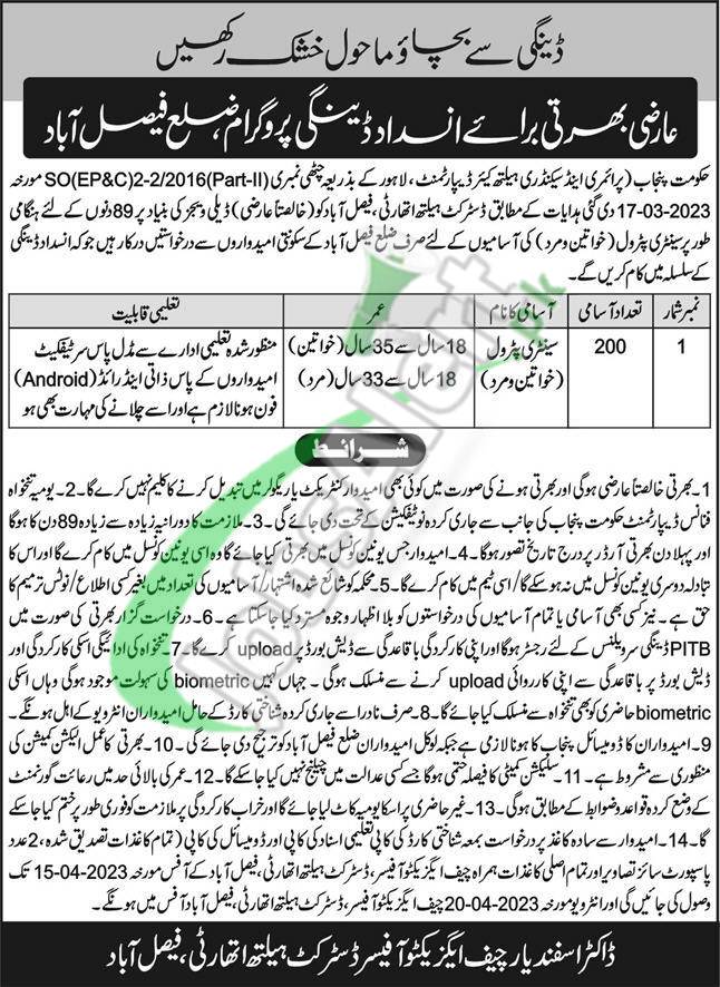 Patrol (BPS-01)) District Health Authority jobs in Faisalabad to be filled
